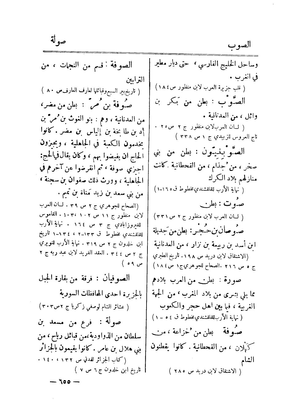 (الصحاح للجوهري ج 2 ص 39. لسان العرب لابن منظور ج 11 ص 102، 103. القاموس للفيروزآبادي ج 3 ص 164. نهاية الأرب للقلقشندي مخطوط ق 133- 2، 134- 1 تاريخ ابن خلدون ج 2 ص 319. نهاية الأرب للنويري ج 2 ص 344. العقد الفريد لابن عبد ربه ج 2 ص 59)
