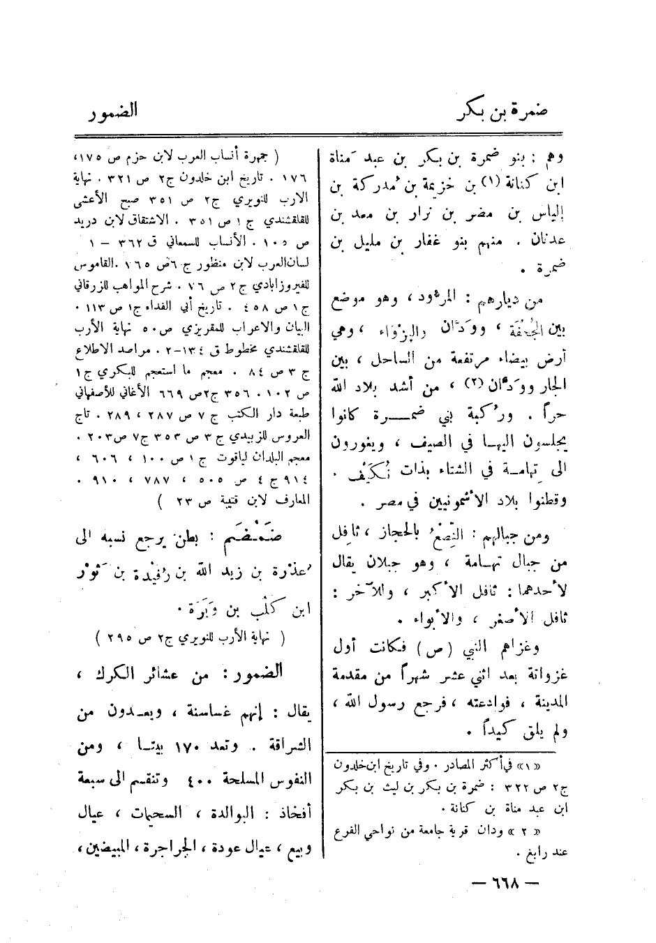 [1] في أكثر المصادر. وفي تاريخ ابن خلدون ج 2 ص 322: ضمرة بن بكر بن ليث بن بكر ابن عبد مناة بن كنانة.