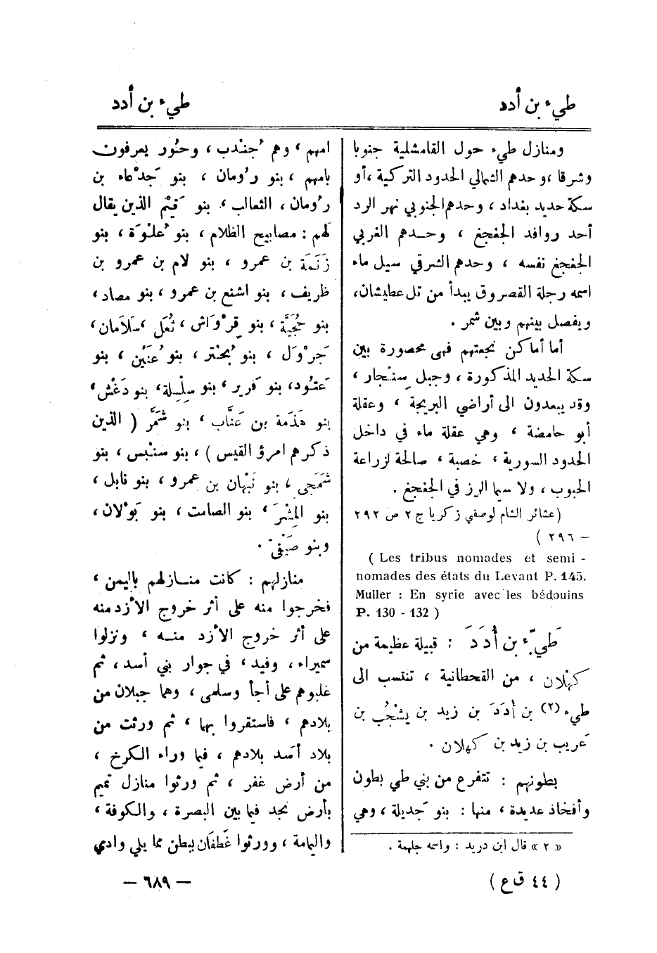 (عشائر الشام لوصفي زكريا ج 2 صp.130 -132) (Muller:eaveclesbedouins desetatsduLevant.P.145) (busnomadesetsemi - (296 -292