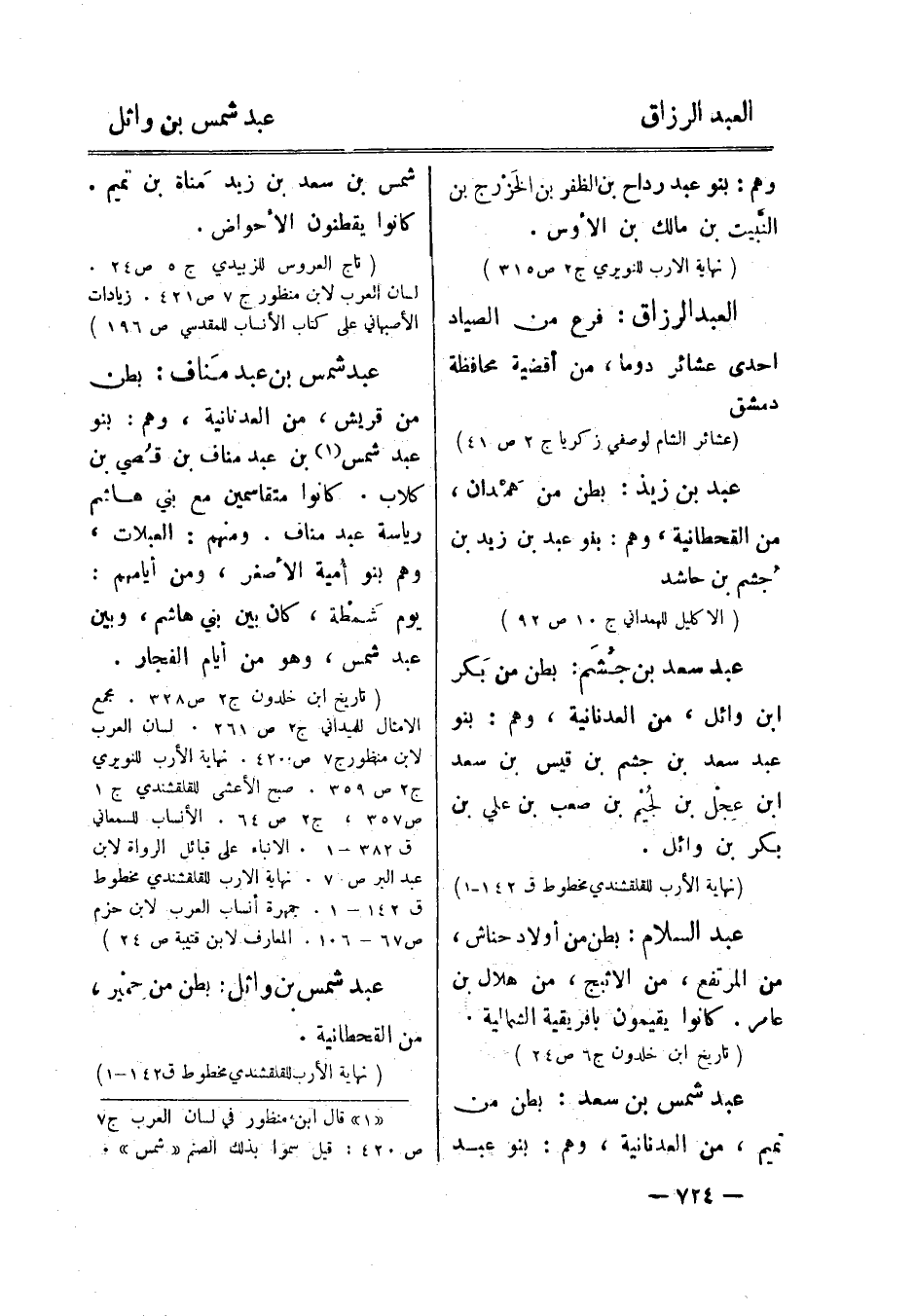 لسان العرب لابن منظور ج 7 ص 421. زيادات الأصبهاني على كتاب الأنساب للمقدسي ص 196)