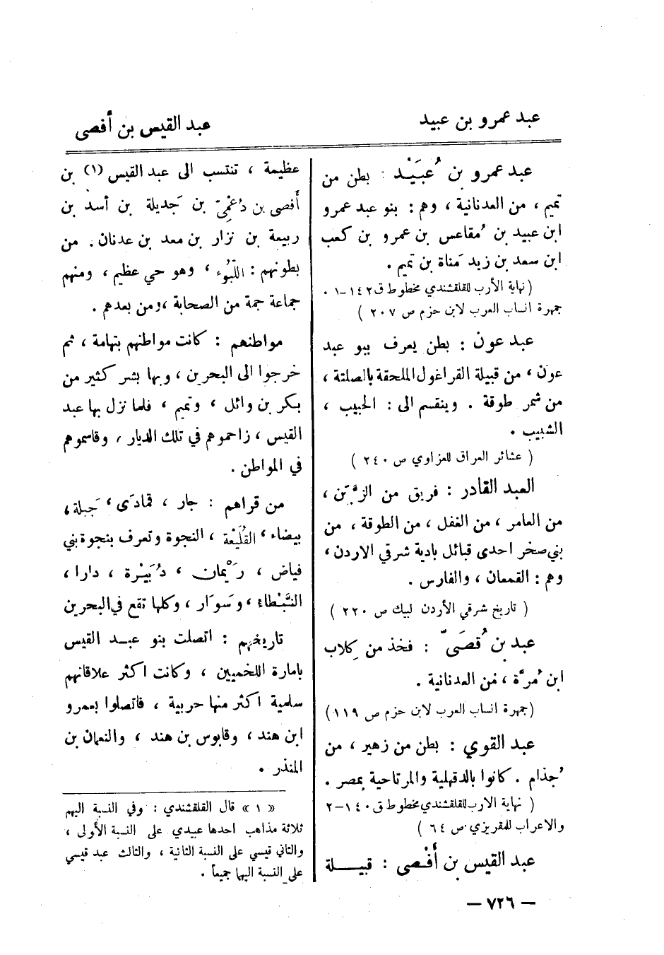 [1] قال القلقشندي: وفي النسبة إليهم ثلاثة مذاهب أحدها عبيدي على النسبة الأولى، والثاني قيسي على النسبة الثانية، والثالث عبد قيسي على النسبة إليهما جميعا.