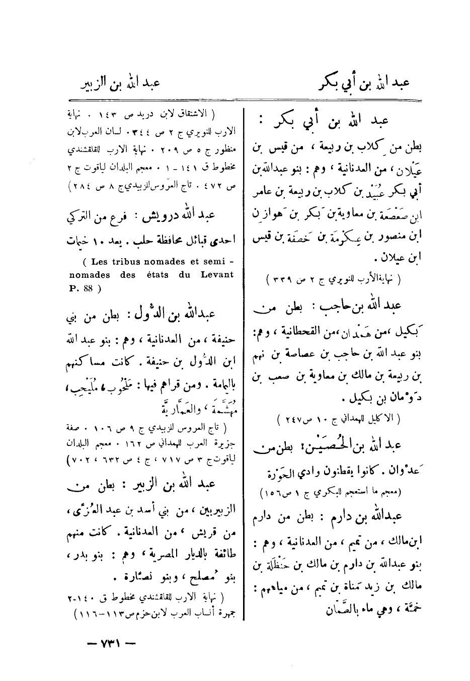 (نهاية الأرب للقلقشندي مخطوط ق 140- 2 جمهرة أنساب العرب لابن حزم ص 113- 116)