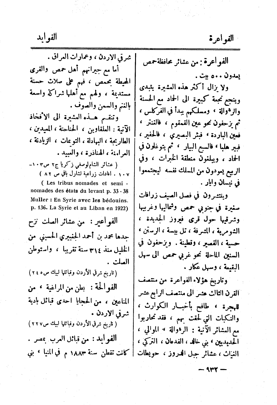 (عشائر الشام لوصفي زكريا ج 2 ص 103- 107. افادات زراعية لشارل بافي صp.136.SyrieetauLibanen 1922) Muller:eaveclesbedouins.esetatsduLevantp.33 -38 (busnomadesetsemi - (82