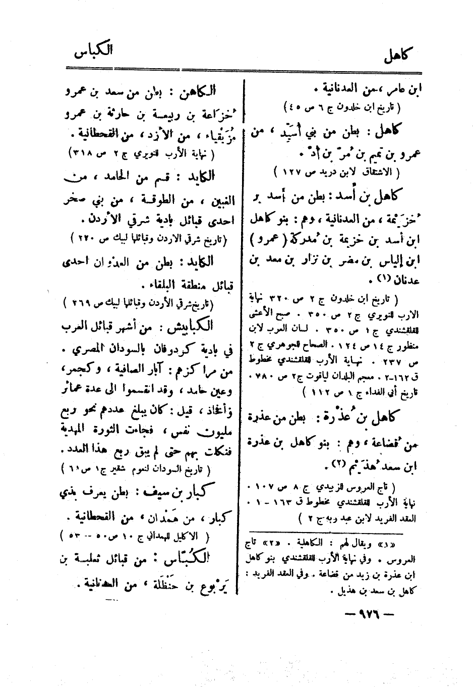 [2] تاج العروس. وفي نهاية الأرب للقلقشندي بنو كاهل ابن عذرة بن زيد من قضاعة. وفي العقد الفريد: