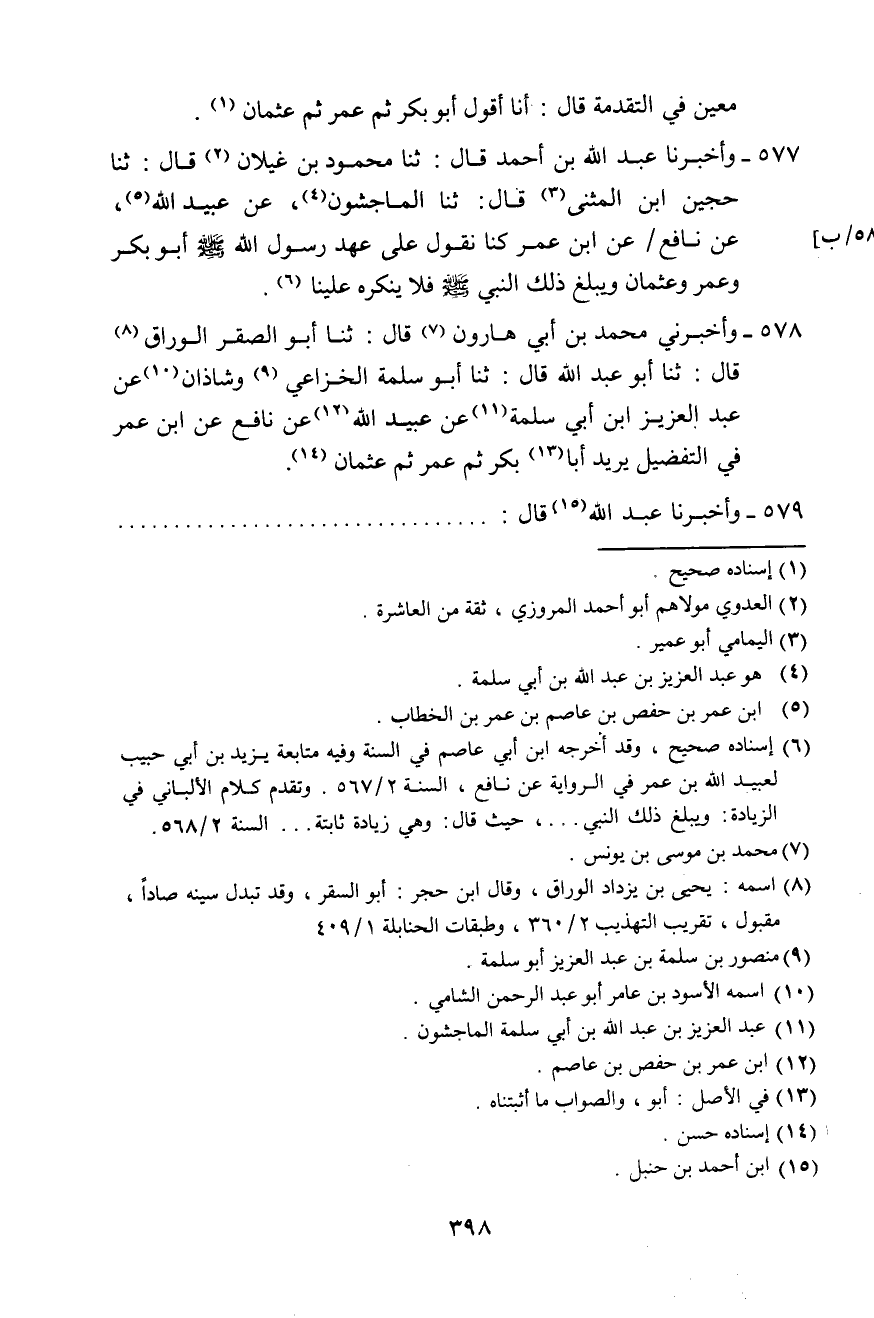 578 - وَأَخْبَرَنِي مُحَمَّدُ بْنُ أَبِي هَارُونَ، قَالَ: ثَنَا أَبُو الصَّقْرِ الْوَرَّاقُ، قَالَ: ثَنَا أَبُو عَبْدِ اللَّهِ، قَالَ: ثَنَا أَبُو سَلَمَةَ الْخُزَاعِيُّ، وَشَاذَانُ، عَنْ عَبْدِ الْعَزِيزِ بْنِ أَبِي سَلَمَةَ، عَنْ عُبَيْدِ اللَّهِ، عَنْ نَافِعٍ، عَنِ ابْنِ عُمَرَ، §فِي التَّفْضِيلِ، يُرِيدُ أَبَا بَكْرٍ، ثُمَّ عُمَرَ، ثُمَّ عُثْمَانَ
