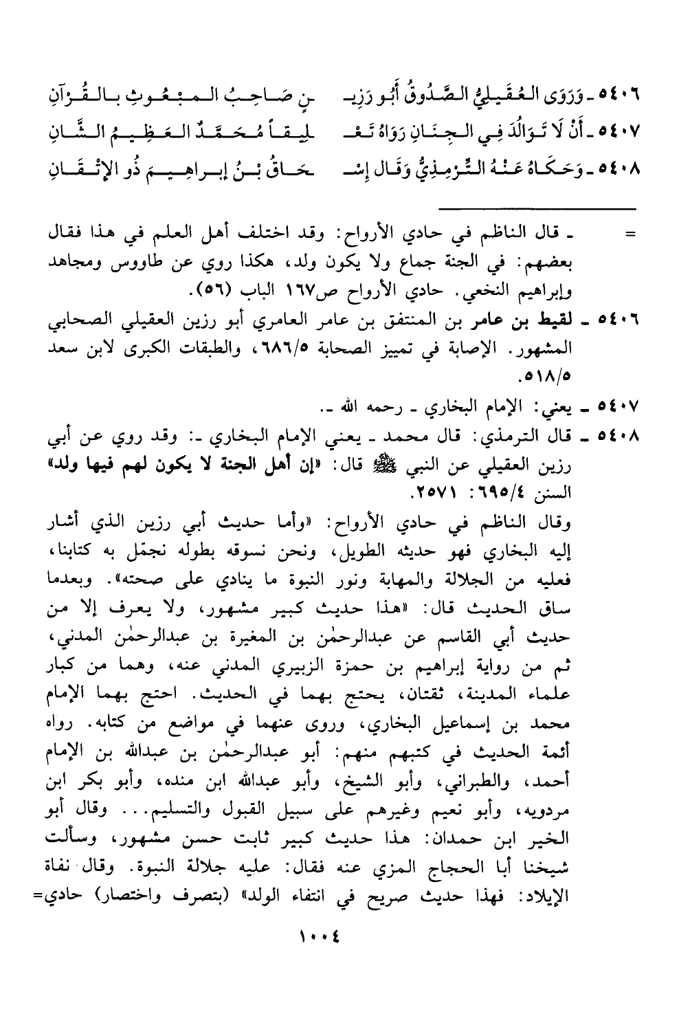 رزين العقيلي عن النبي! قال: "إن اهل الجنة لا يكون لهم فيها ولد"