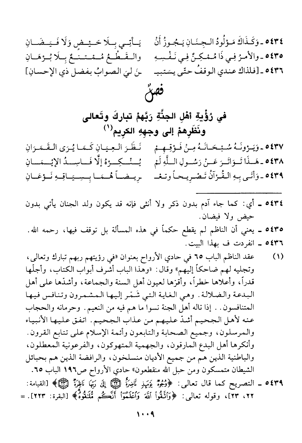 عقد الناظم الباب 65 في حادي الارواح بعنوان "في رويتهم ربهم تبارك وتعالى،
