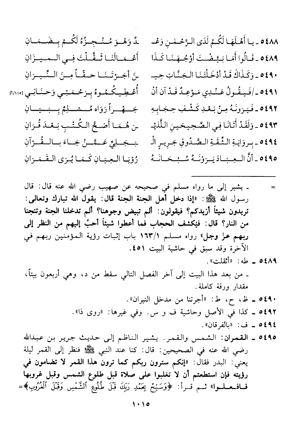 - القمران: الشمس والقمر. يشير الناظم إلى حديث جرير بن عبدالله
