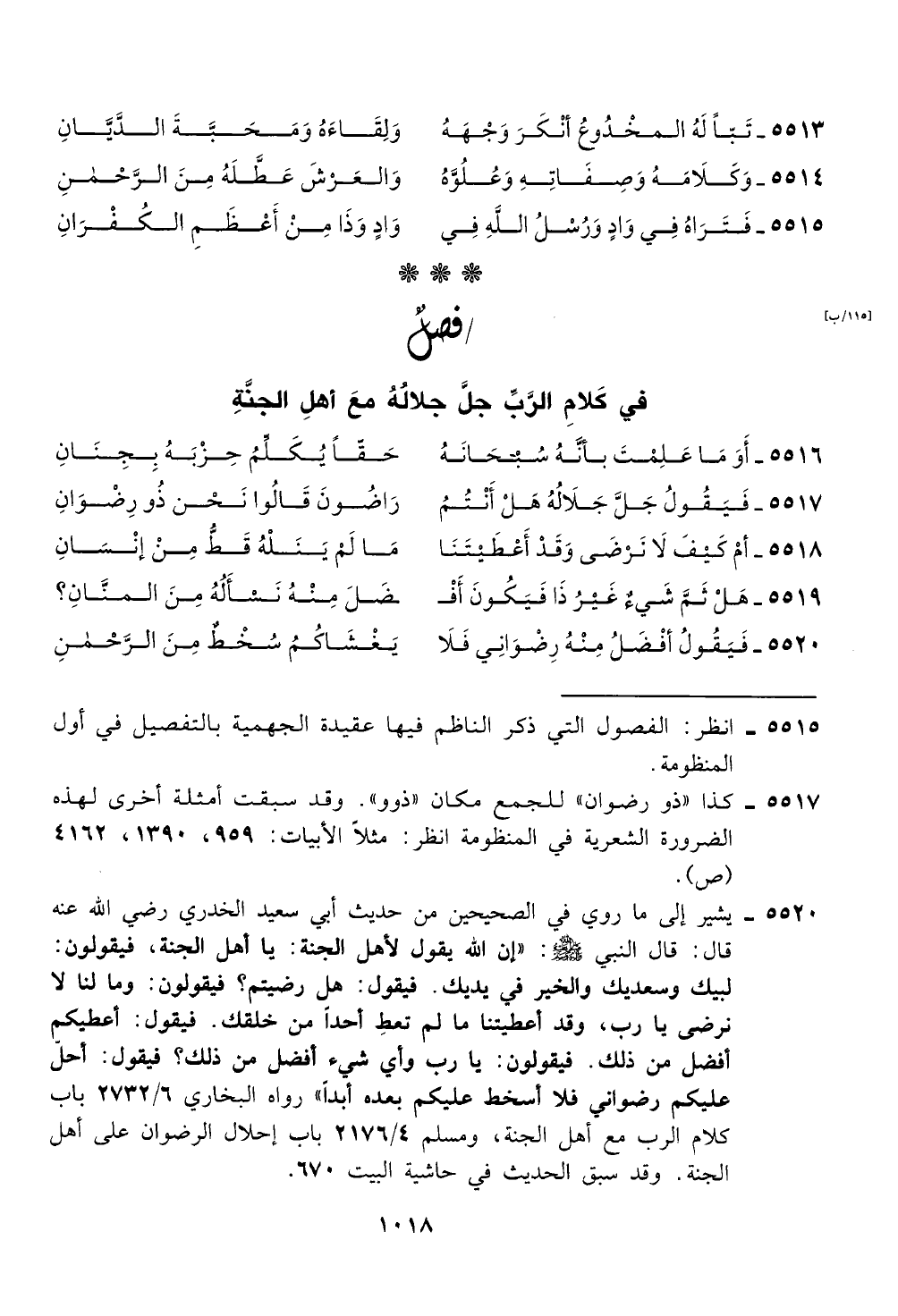 - فيقول جل جلاله هل انتم راضون قالوا نحن ذو رضوان