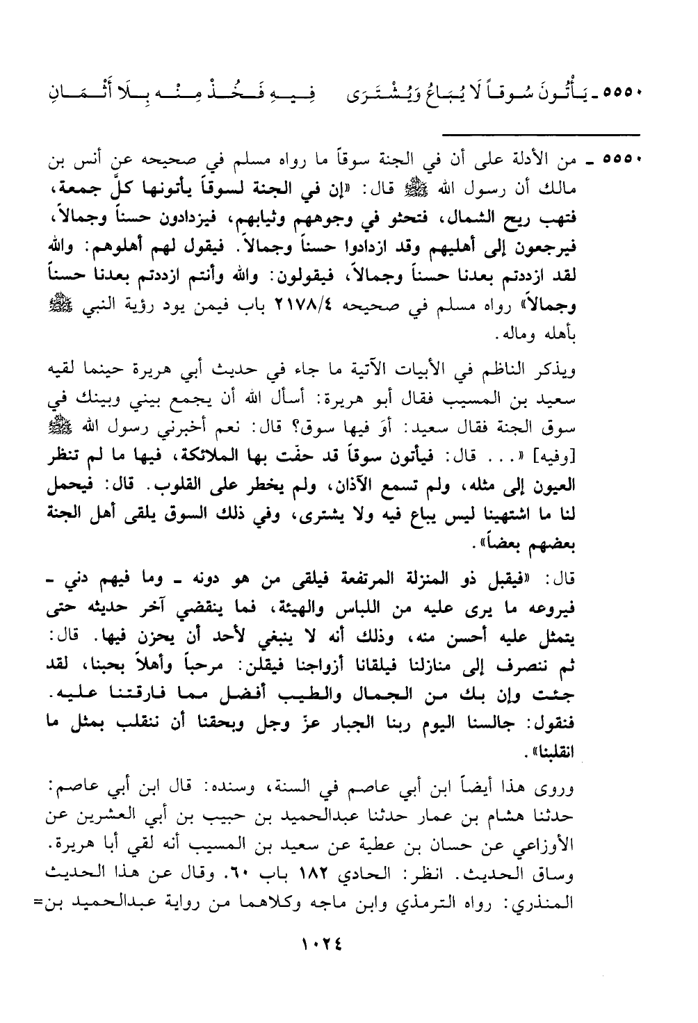 من الادلة على أن في الجنة سوقا ما رراه مسلم في صحيحه عن أنس بن