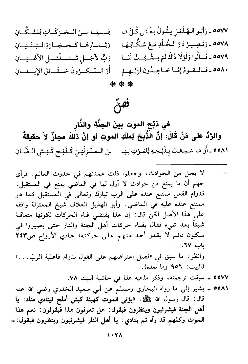 5577 - و بو الهذيل يقول يفنى كك ما فيها من الحركات للسكان