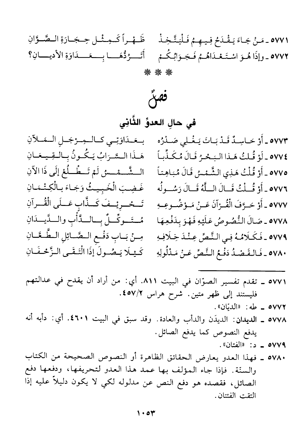5780 - فهذا العدو يعارض الحقائق الظاهرة او النصوص الصحيحة من الكتاب