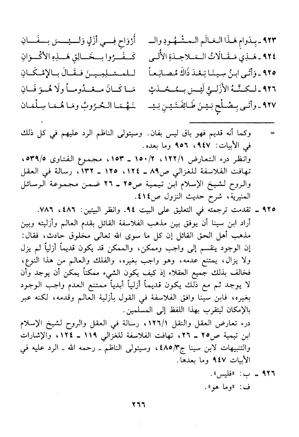 والتنبيهات لابن سينا ج 4853، وسيتولى الناظم - رحمه الله - الرد عليه في