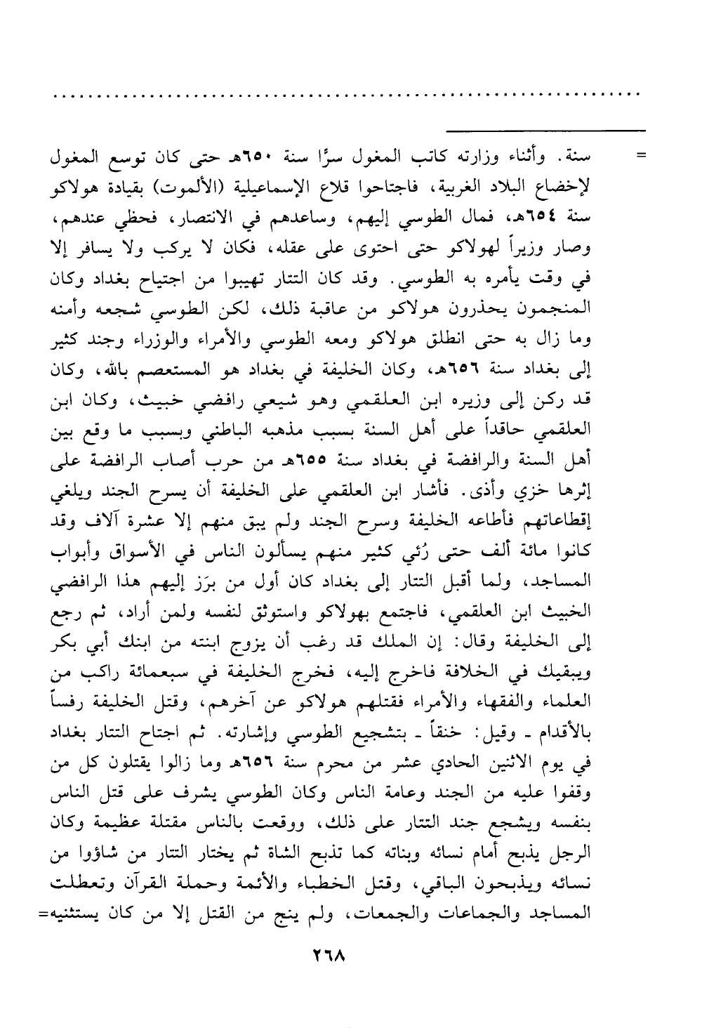 في يوم الاثنين الحادي عشر من محرم سنة 656ص وما زالوا يقتلون كل من