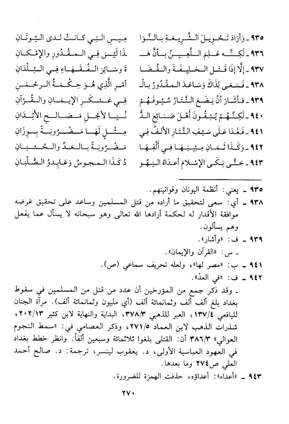 العوالي " لمم 386 أن: القتلى بلغوا ثلاثمائة وسبعين ألفا. وانظر خطط بغداد