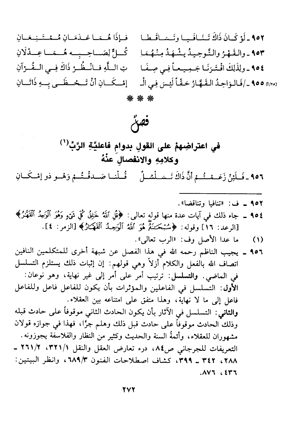 954 - ولذلك اقترنا جميعا في صفا ت الله فانظز ذاك في القران