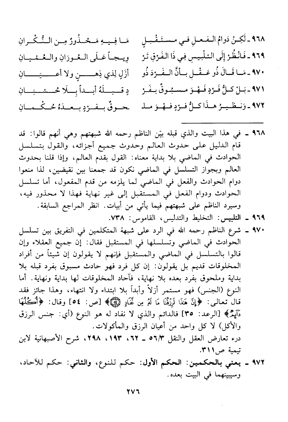 شرع الناظم رحمه الله في الرد على شبهة المتكلمين في التفريق بين تسلسل