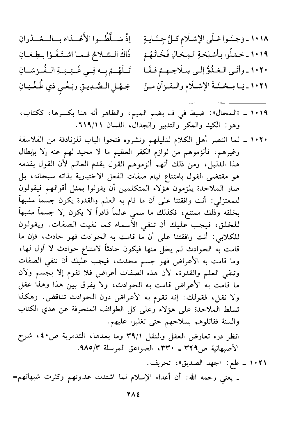 1020 - لما انتصر هل الكلام لدليلهم ونشروه فتحوا الباب للزنادقة من الفلاسفة