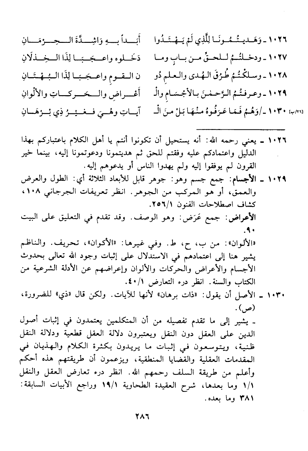1/ 1 وما بعدها، شرح العقيدة الطحاوية 19/ 1 وراجع الابيات السابقة: