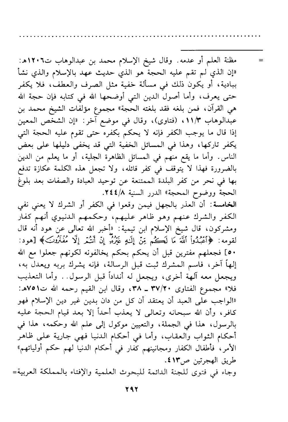 الحجة ووضوح المحجة " الدرر السنية 24418.