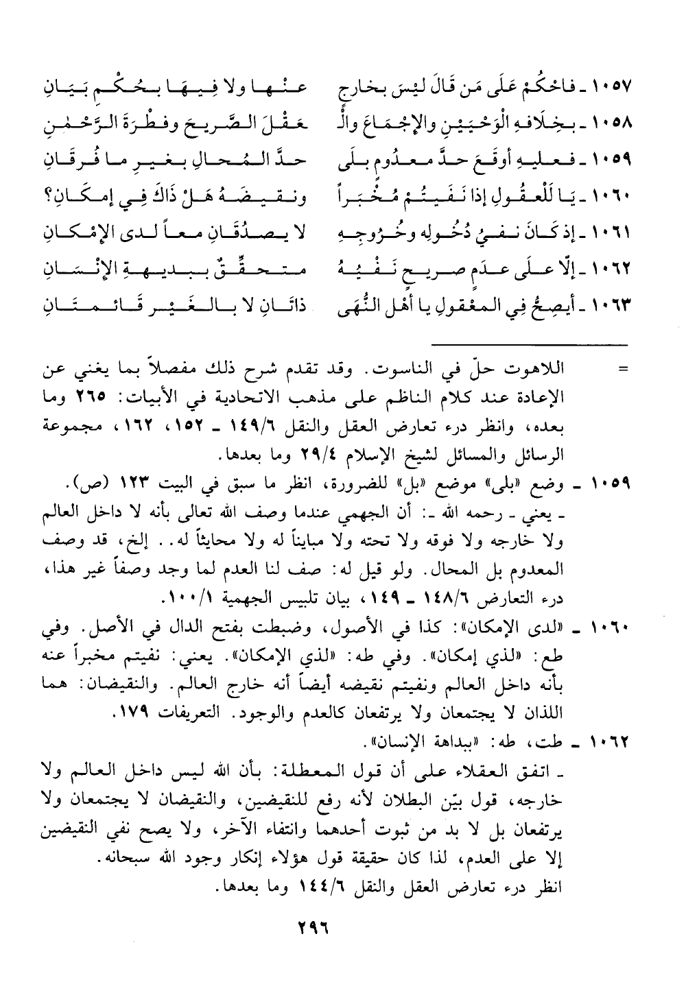 الاعادة عند كلام الناظم على مذهب الاتحادية في الابيات: 265 وما
