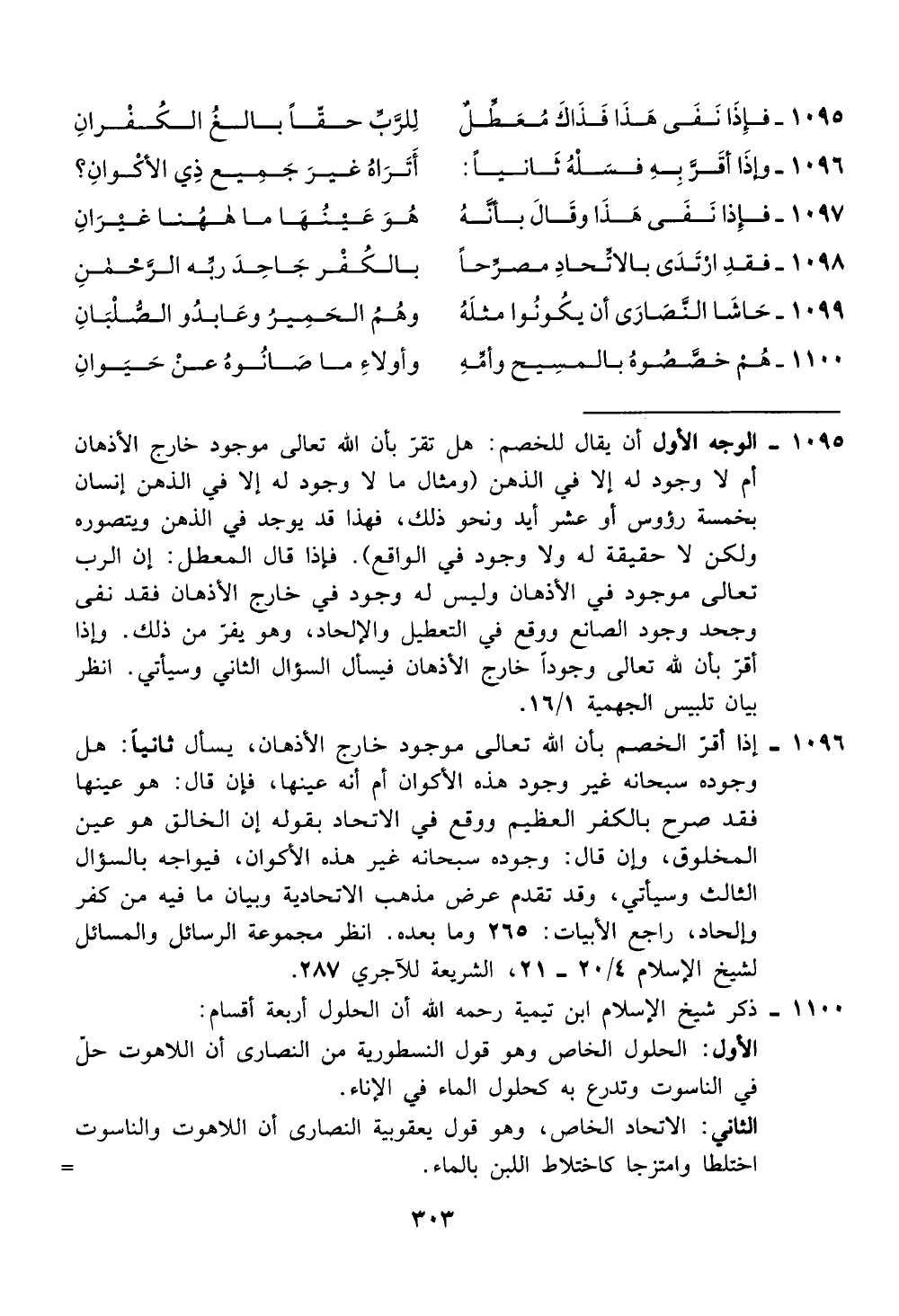 والحاد، راجع الابيات: 265 وما بعده. انظر مجموعة الرسائل والمسائل
