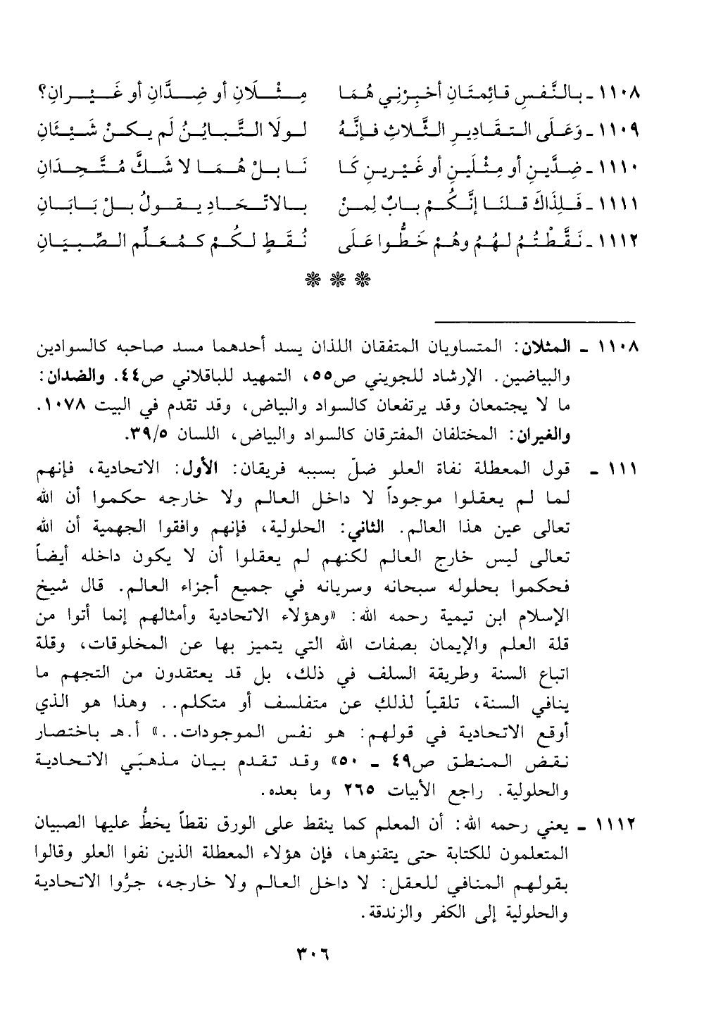والبياضين. الارشاد للجويني ص ه ه، التمهيد للباقلاني ص 44. و 1 لضدان: