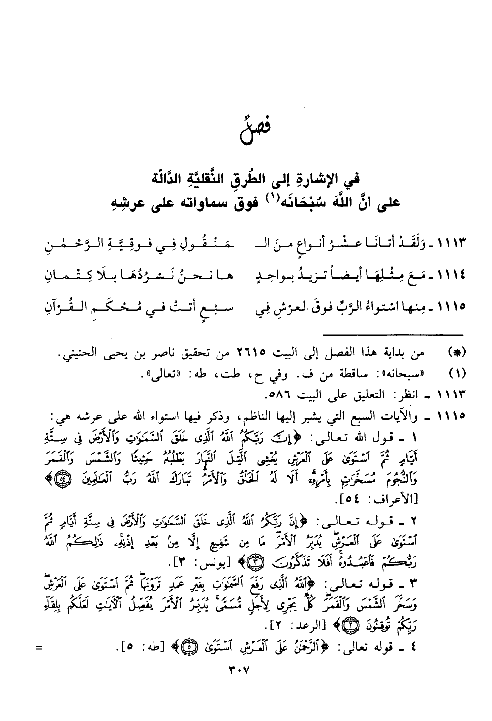 1115 - والايات السبع التي يشير إليها الناظم، وذكر فيها استواء الله على عرشه هي: