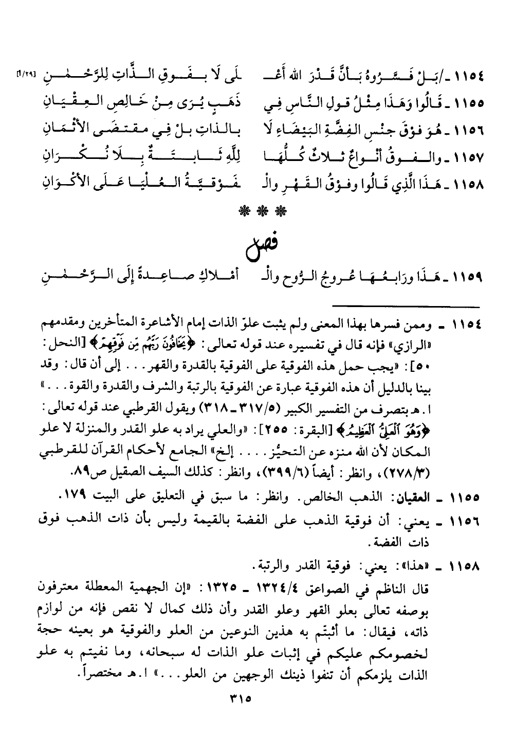 الذات يلزمكم أن تنفوا ذينك الوجهين من العلو. . ." ا. ص مختصرا.
