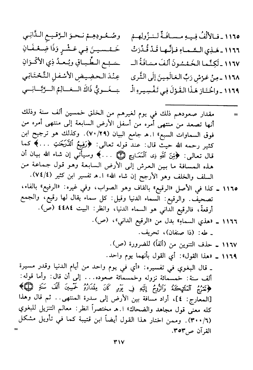 [المعارج: 4]، أراد مسافة بين الارض إلى سدرة المنتهى. . ثم قال وهذا