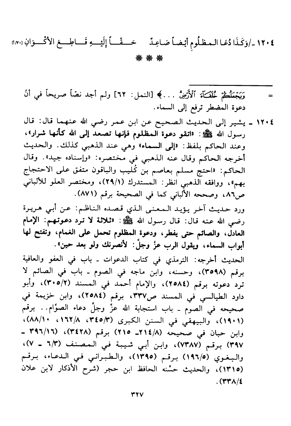 العادل، و 1 لصائم حتى يقطر، ودعوة 1 لمظلوم تحمل على الفمام، وتقتح لها