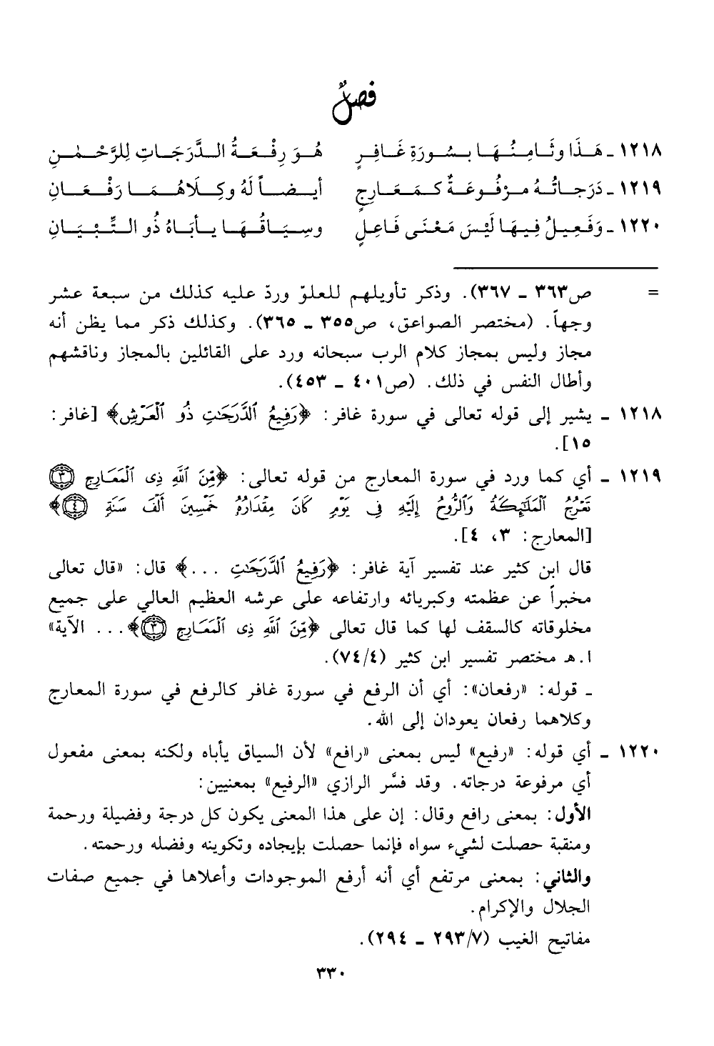 ص 363 - 367). وذكر تأويلهم للعلو ورذ عليه كذلك من سبعة عشر