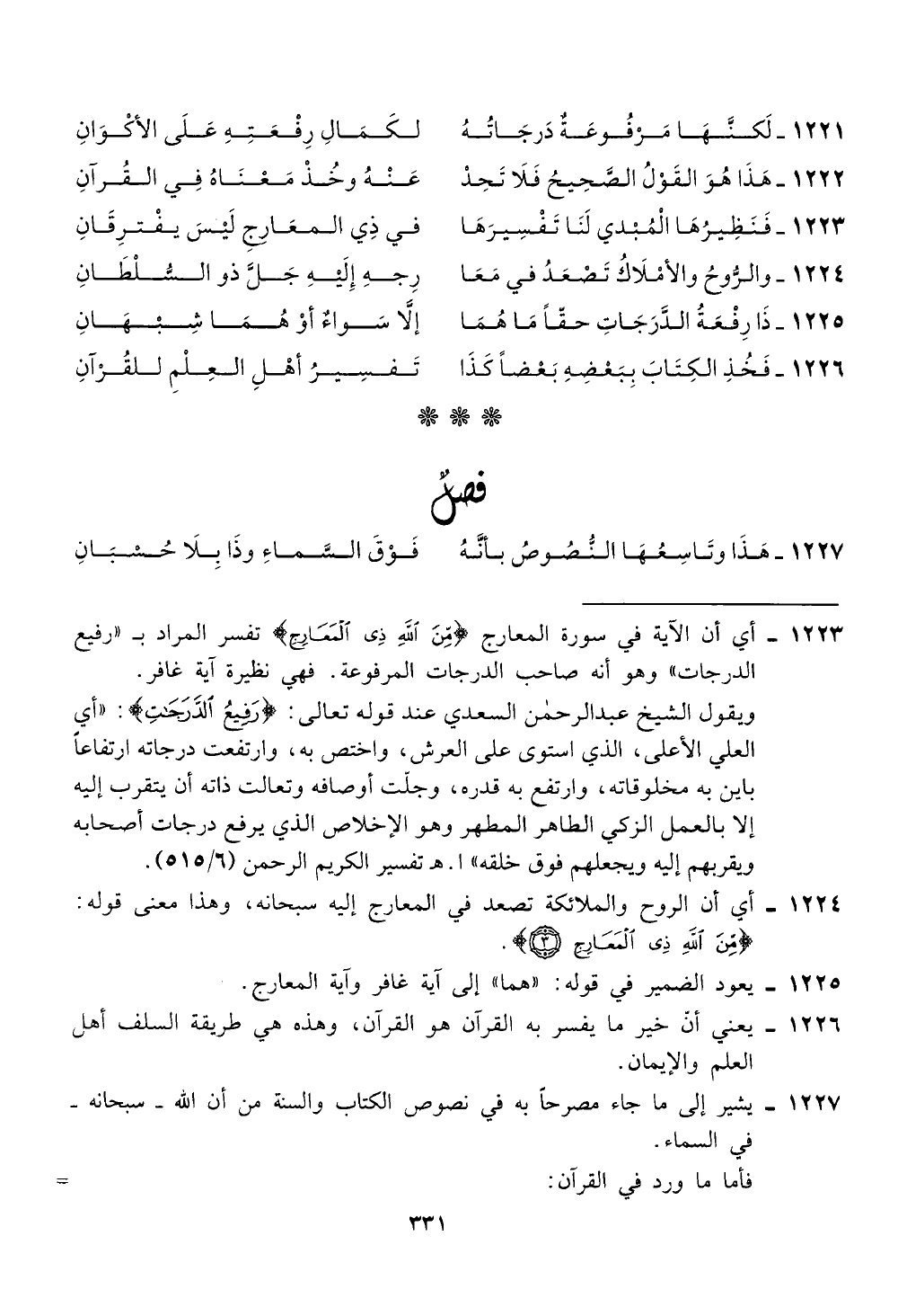 الدرجات " وهو أنه صاحب الدرجات المرفوعة. فهي نظيرة اية غافر.