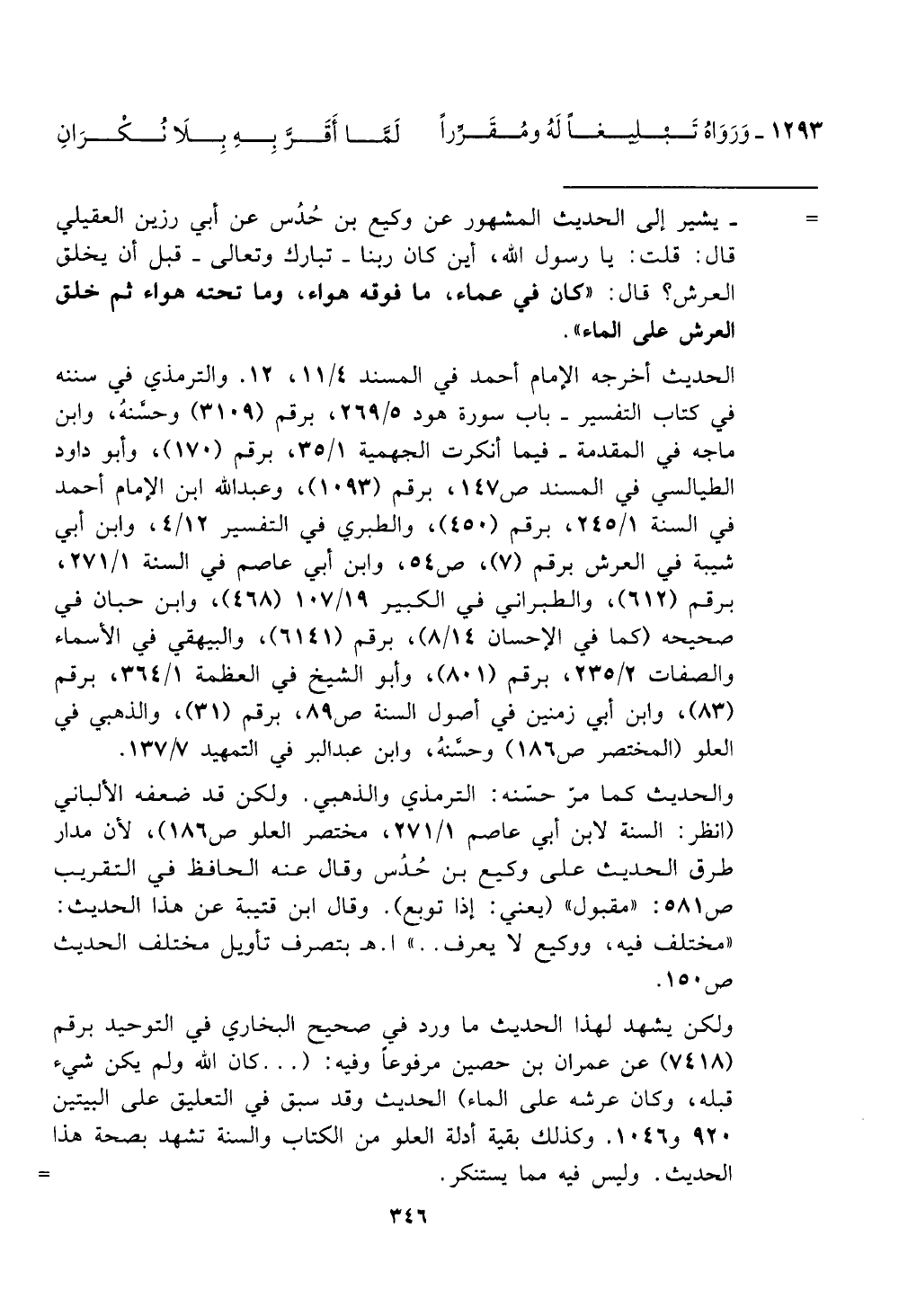 (انظر: السنة لابن أبي عاصم 27111، مختصر العلو ص 186)، لأن مدار