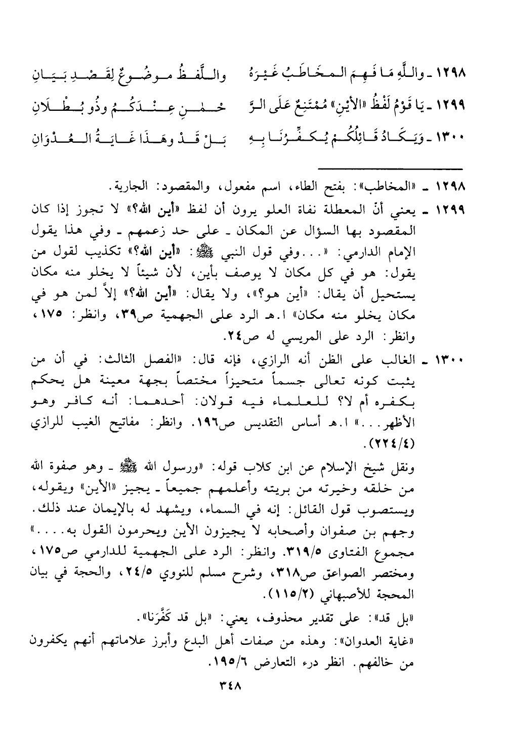 وجهم بن صفوان واصحابه لا يجيزون الأين ويحرمون القول به. . . . "