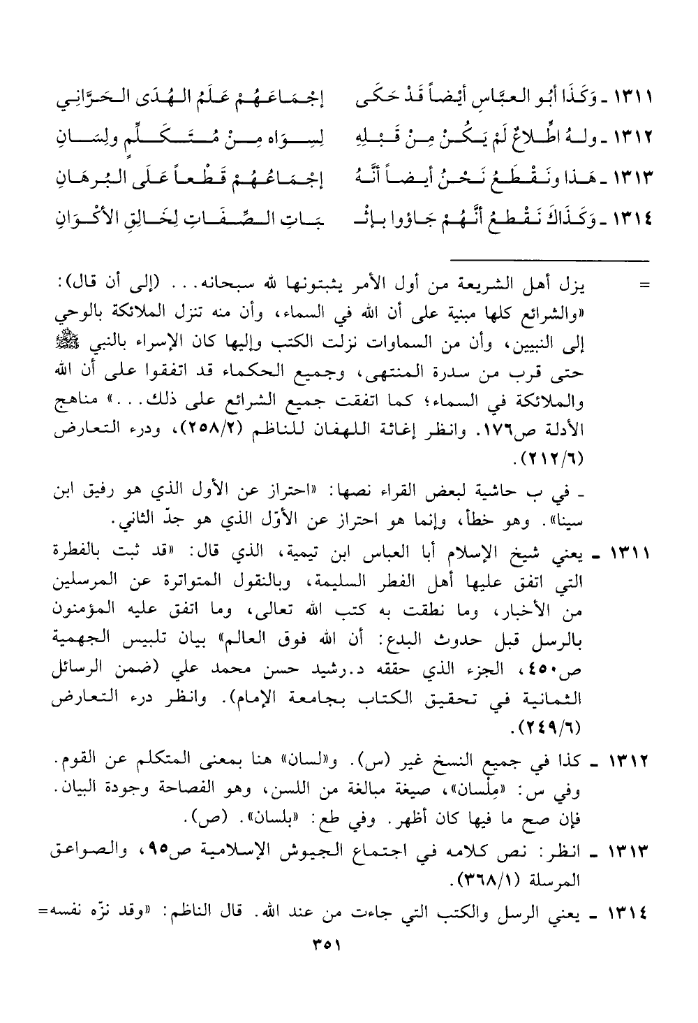 الثمانيه في تحقيق الكتاب بجامعة الامام). وانطر درء التعارض