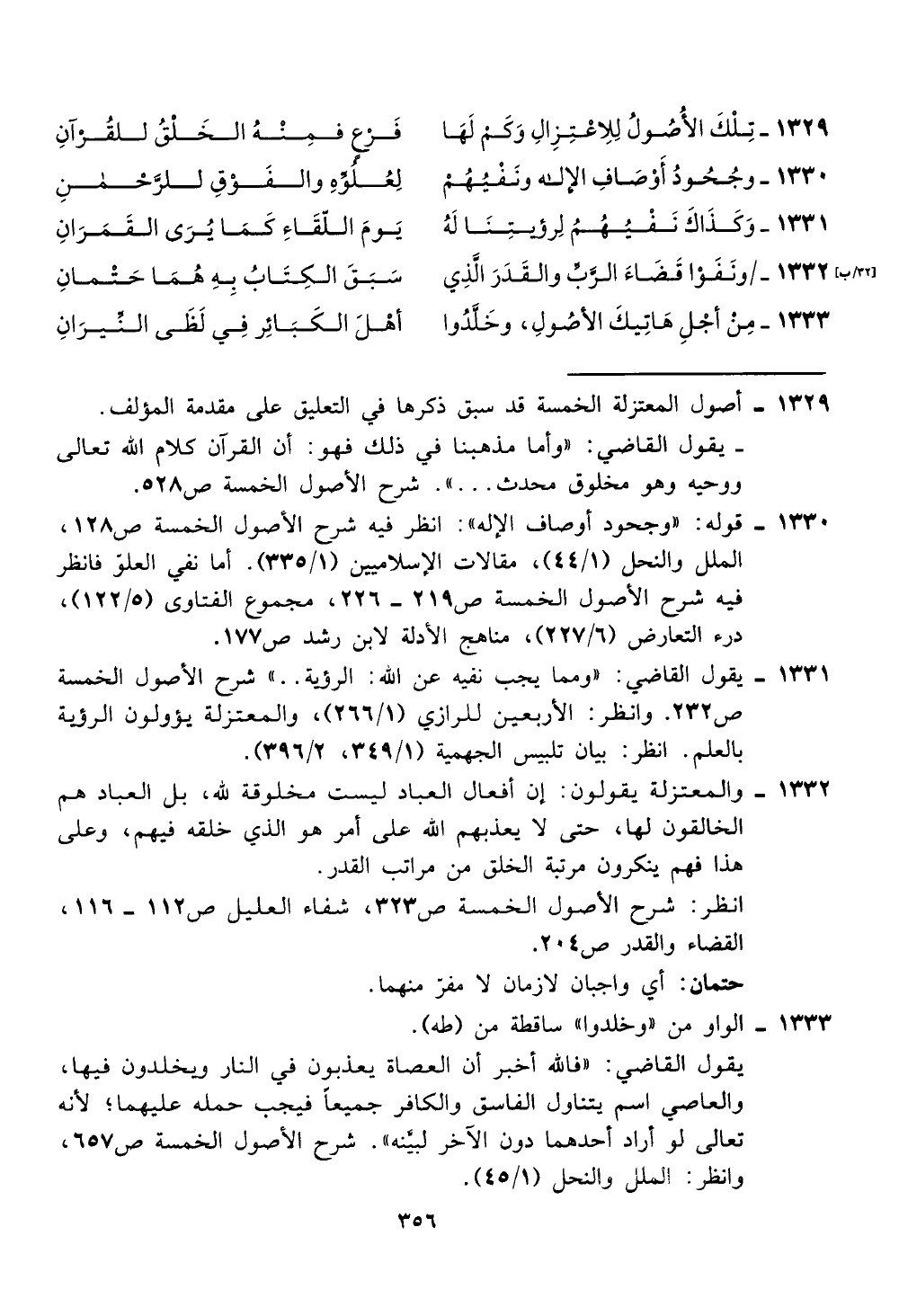 1329 - أصول المعتزلة الخمسة قد سبق ذكرها في التعليق على مقدمة المولف.