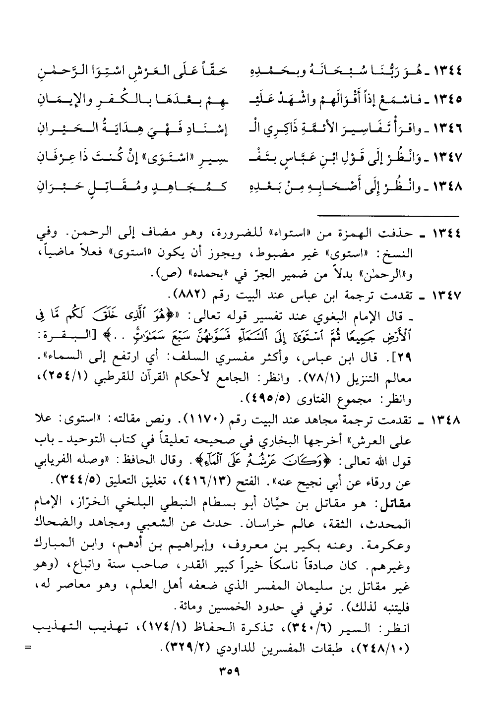 تقدمت ترجمة مجاهد عند البيت رقم (1170). ونص مقالته: "استوى: علا
