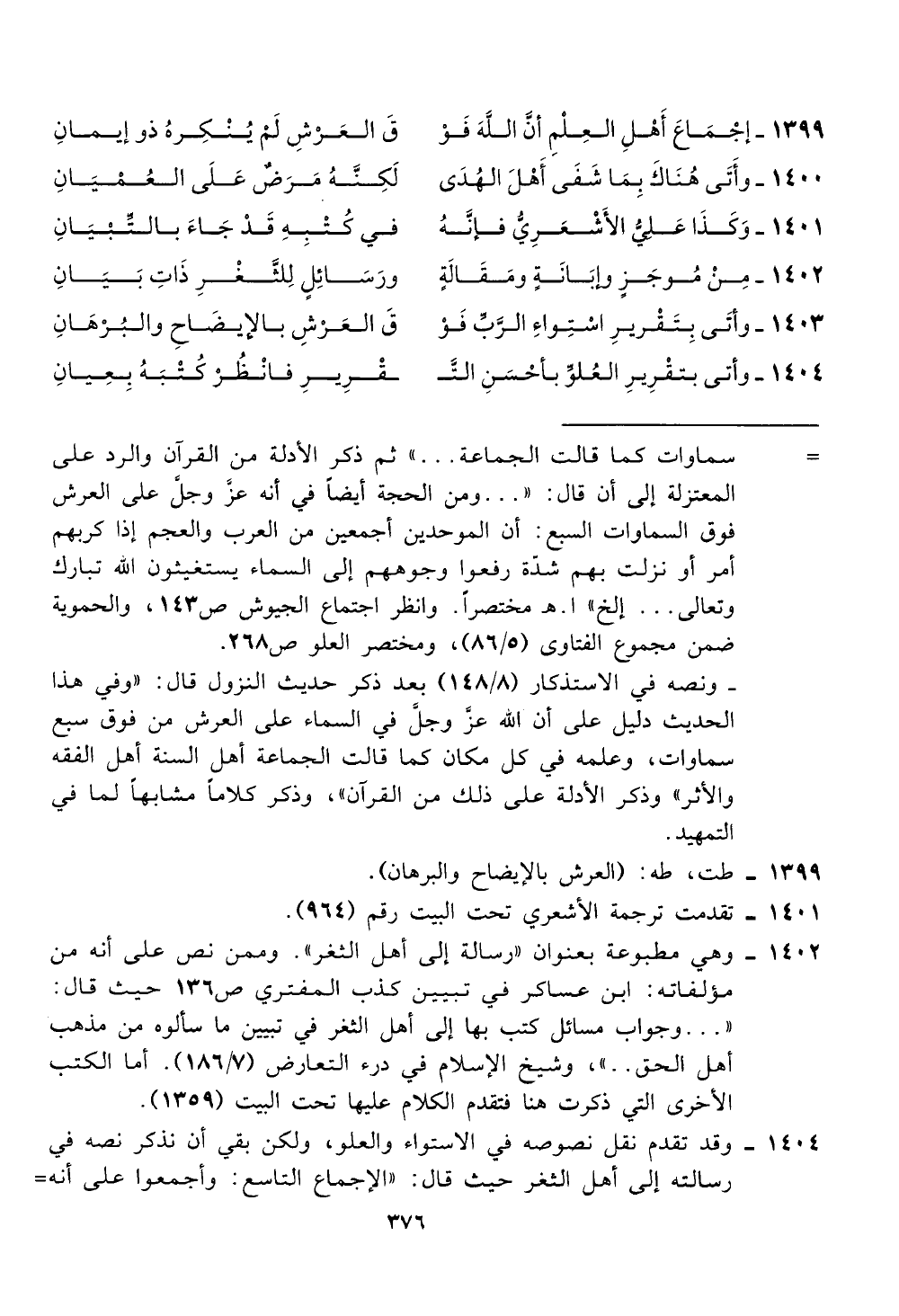 والاثر" وذكر الادلة على ذلك من القران "، وذكر كلامأ مشابهأ لما في