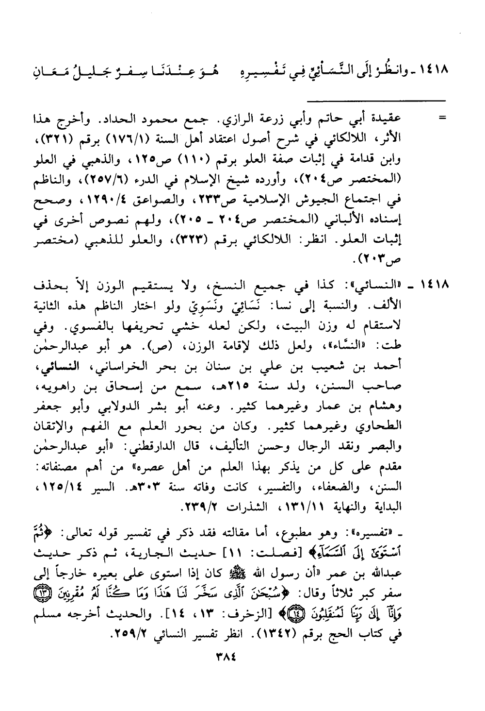 1418 - وانظز لى النسأصبى في تفسيره هو عندنا سفر جليل معان