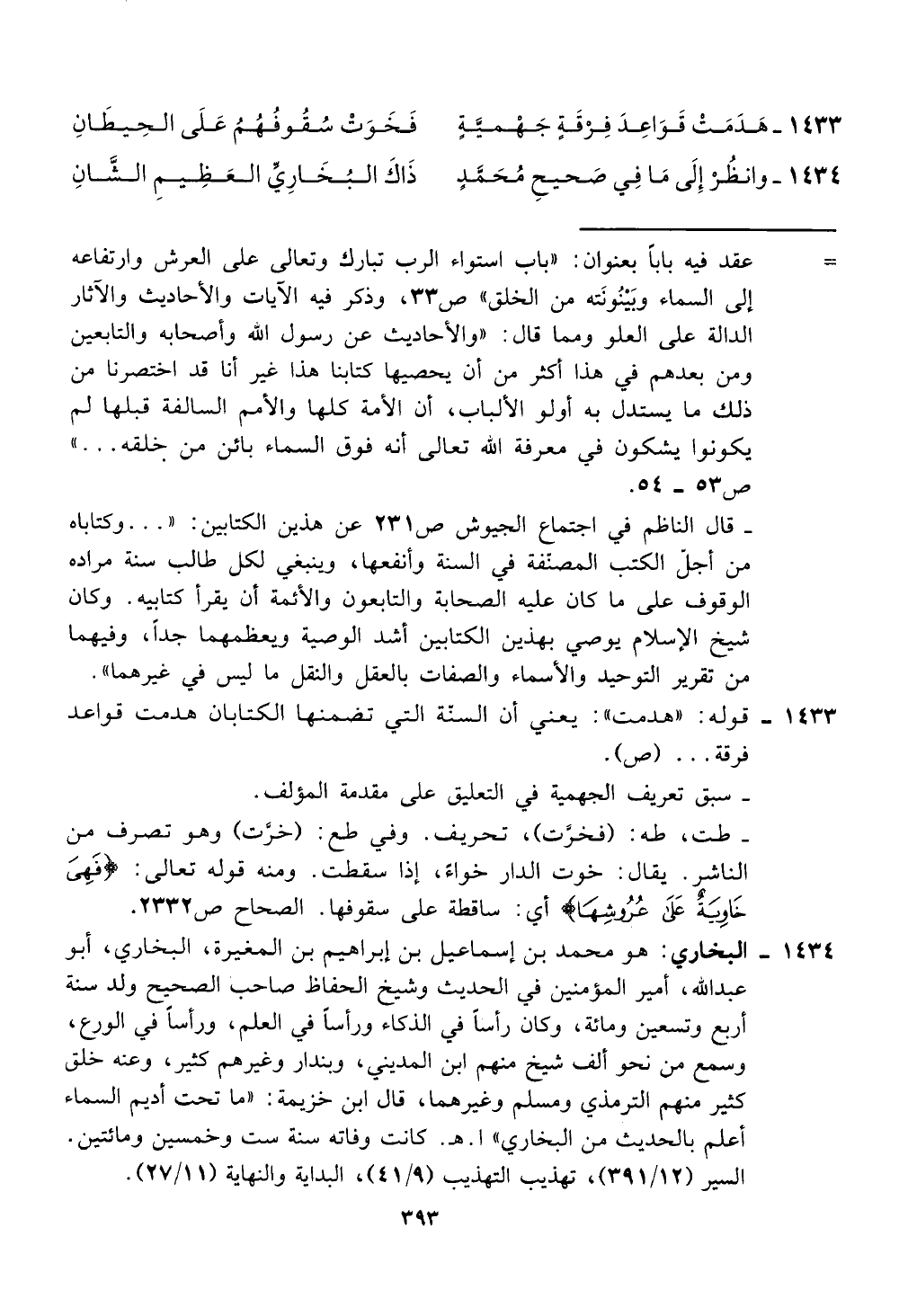 الدالة على العلو ومما قال: "والاحاديث عن رسول دته و صحابه والتابعين