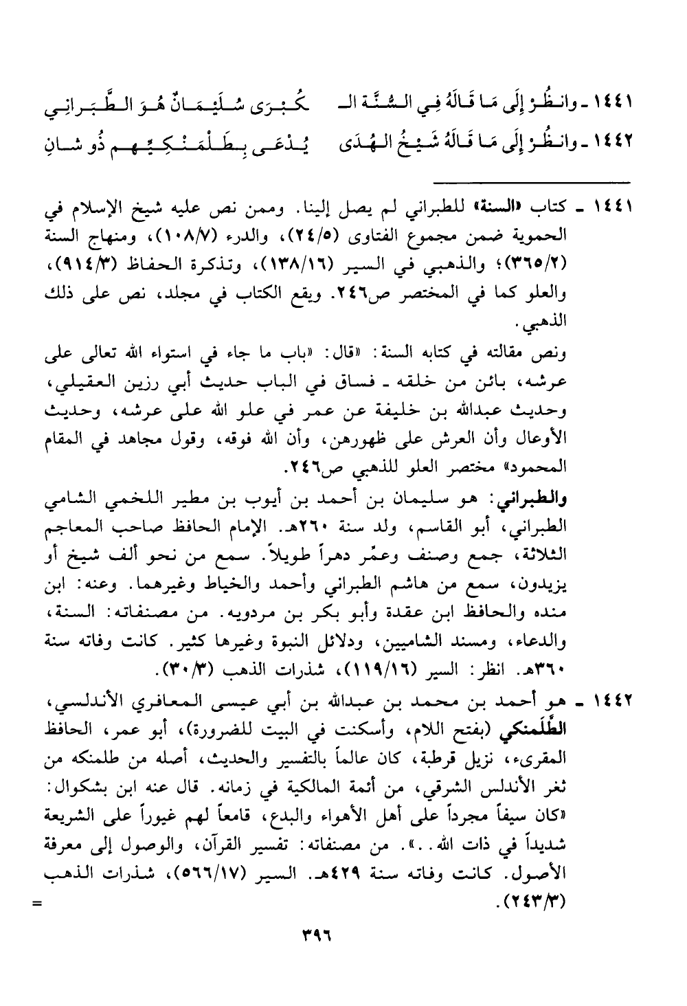 كتاب "السنة" للطبراني لم يصل إليناه وممن نص عليه شيخ الإسلام في