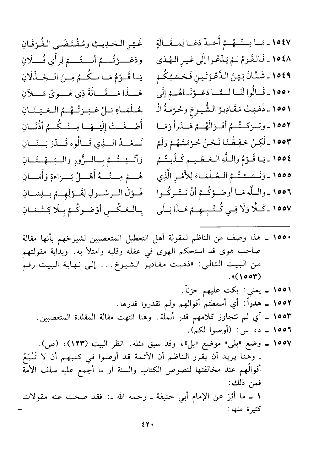 هذا وصف من الناظم لمقوله اهل التعطيل المتعصبين لشيوخهم بأنها مقالة