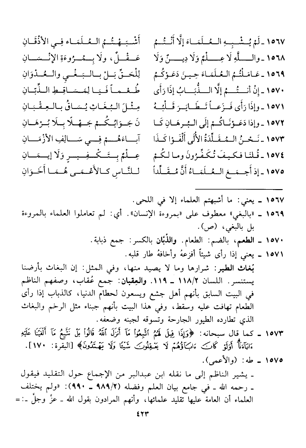 العلماء ان العامة عليها تقليد علمائها، و نهم المرادون بقول الله - عر وجل -:-
