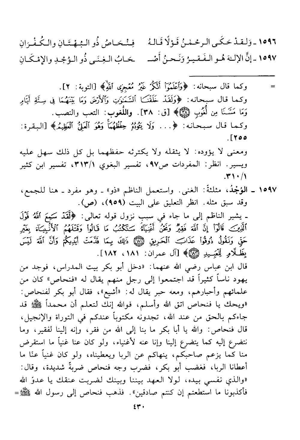 قال فنحاص: والله يا ابا بكر ما بنا إلى الله من فقر، وإنه إلبنا لفقير، وما