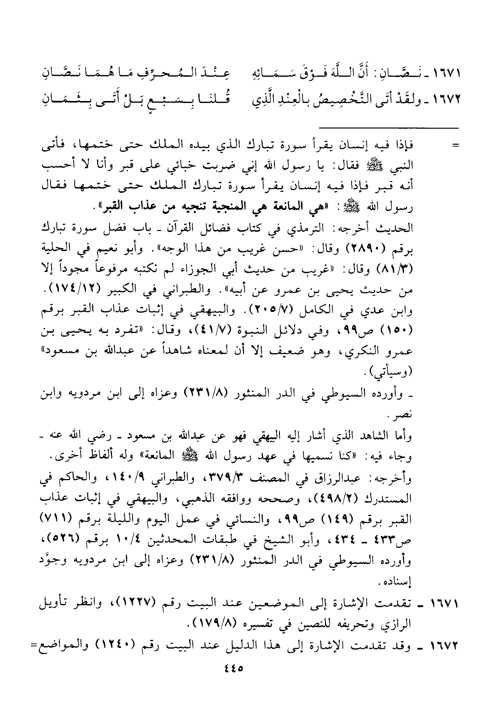 رسول الله! ر: "هي المانعة هي المنجية تنجيه من عذاب القبر".