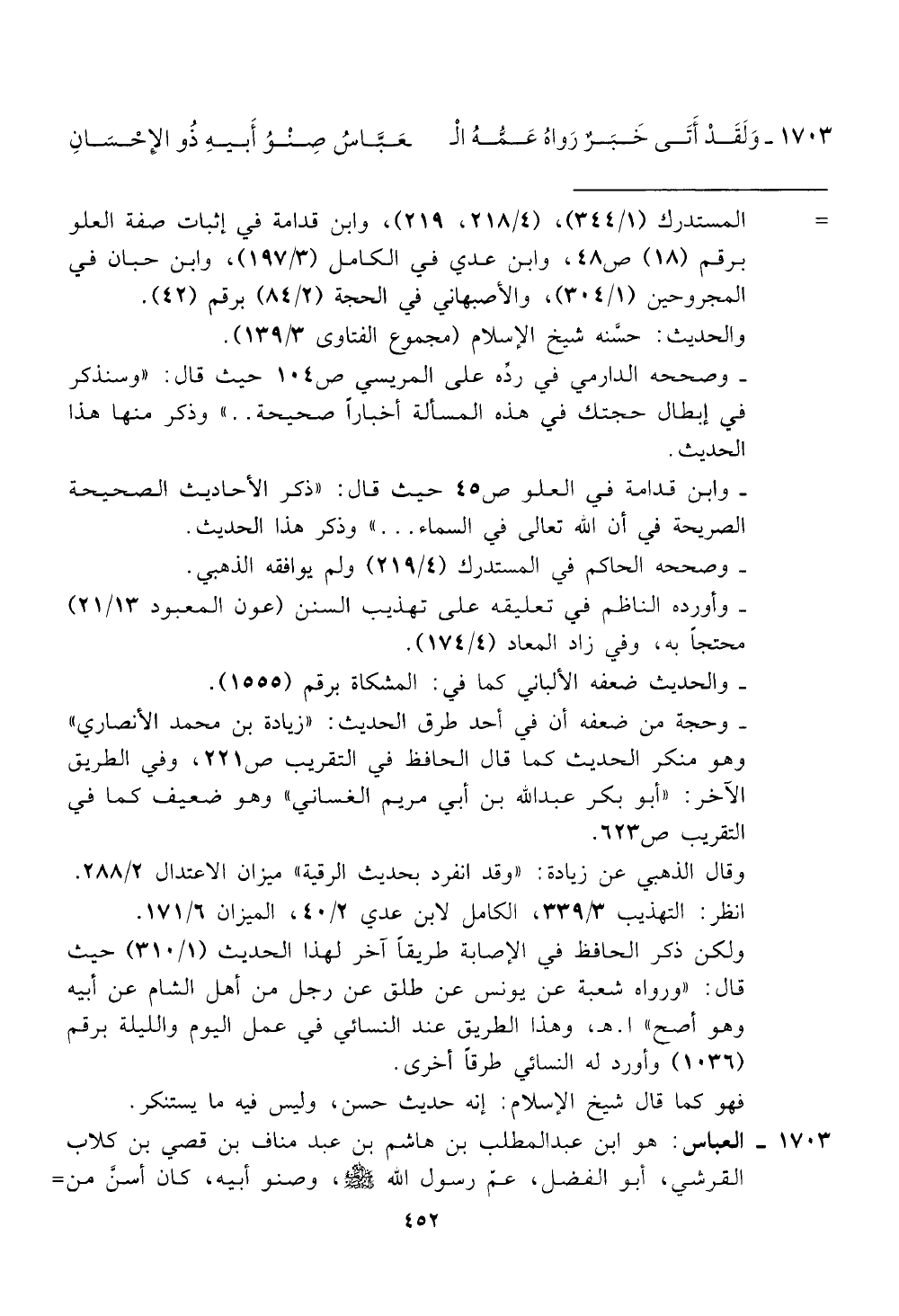 - وابن قدامة في العلو صه 4 حيث قال: "ذكر الأحاديث الصحيحة