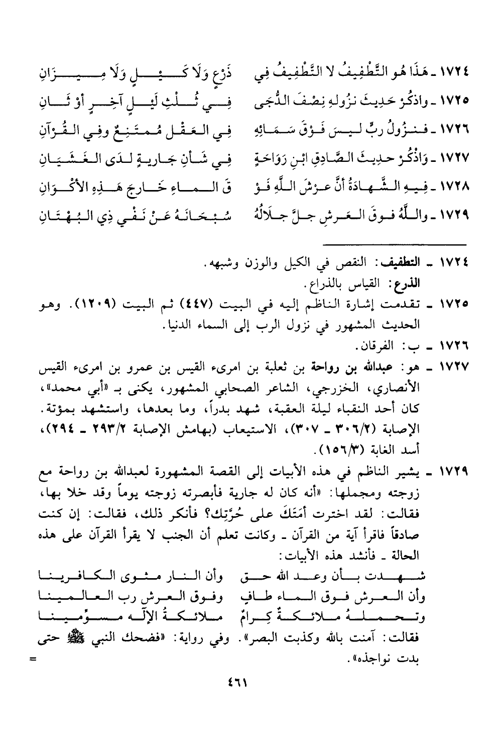 يشير الناطم في هذه الابيات إلى القصة المشهورة لعبدالله بن رواحة مع