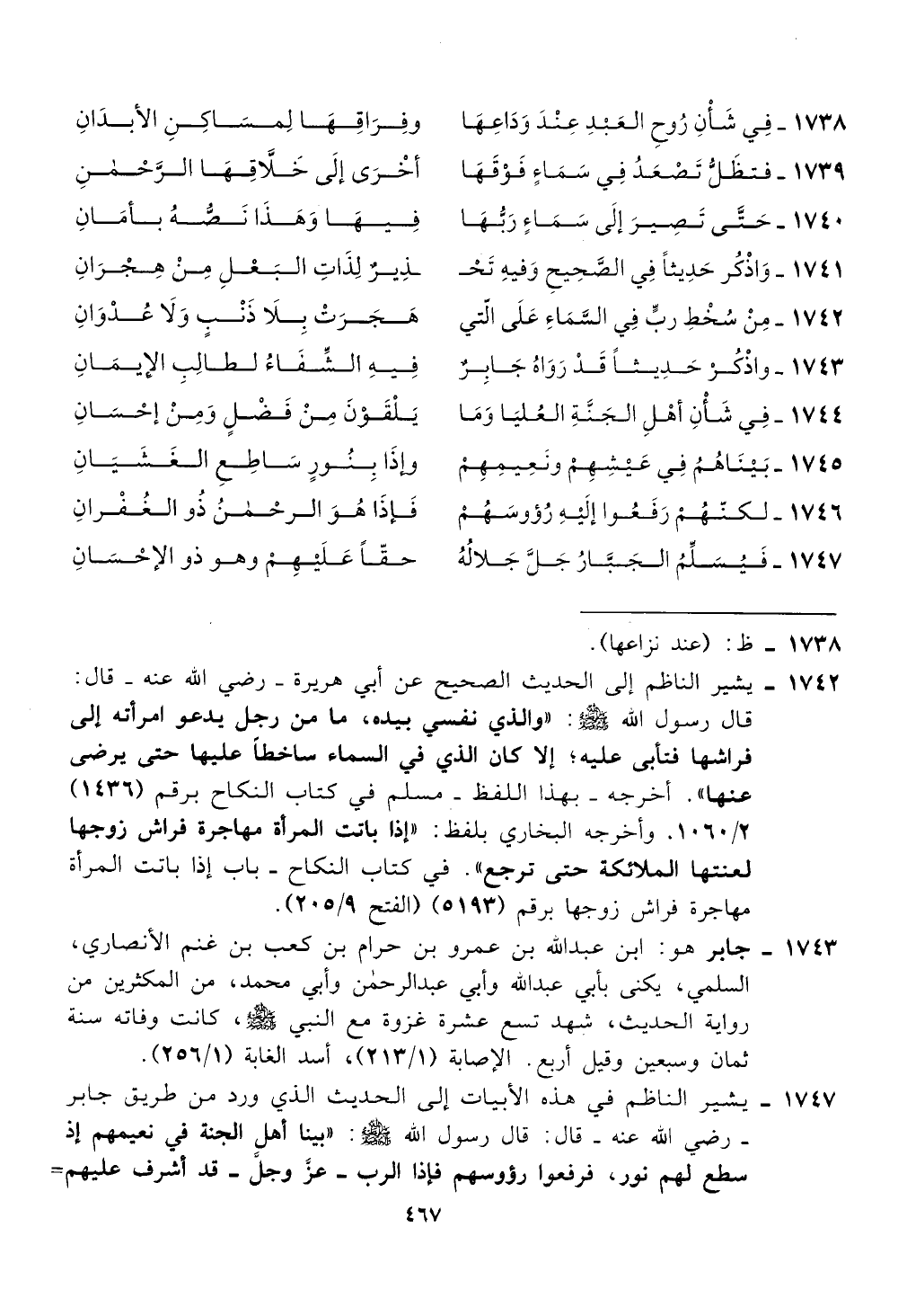 يشير الناظم في هذه الابيات إلى الحديث الذي ورد من طريق جابر