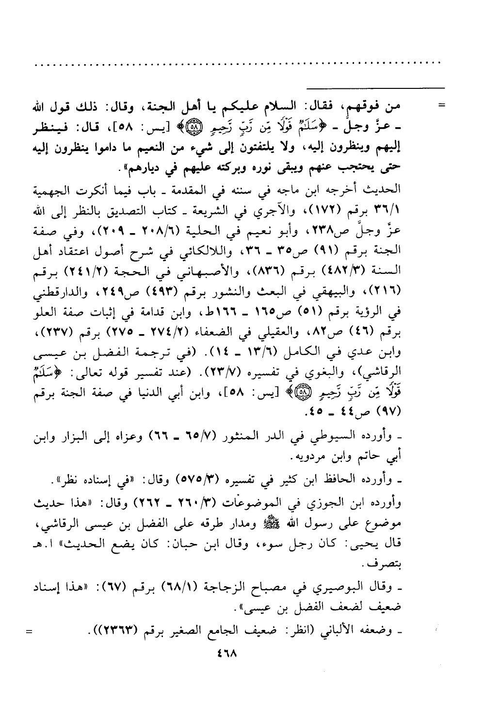 الجنة برفم (91) صره 3 - 36، واللالكائي في شرح أصول اعتقاد أهل